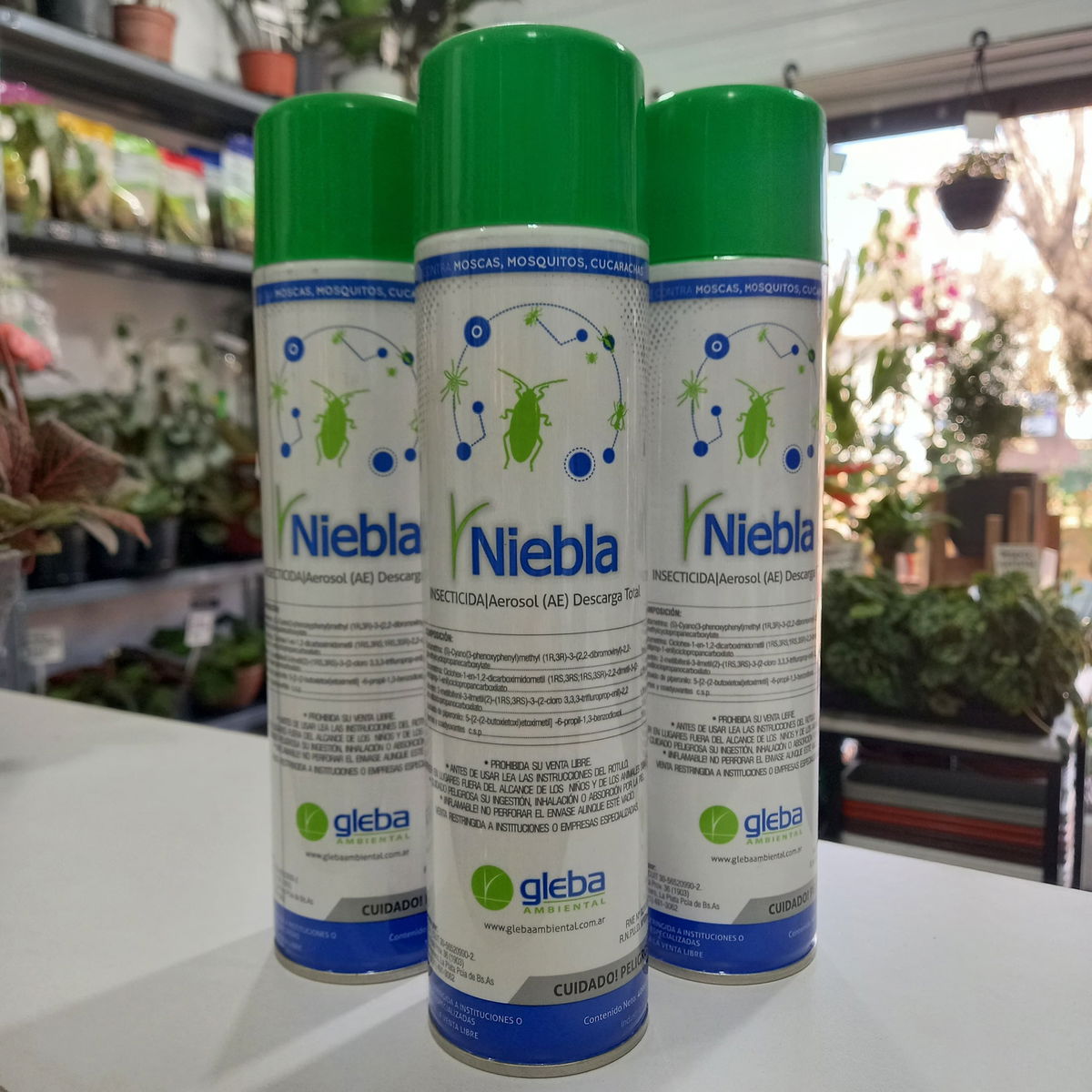 Niebla® es un aerosol insecticida de amplio espectro provisto con una válvula de descarga total. Su fórmula está compuesta por tres piretroides que garantizan un excelente efecto de desalojo, gran capacidad de volteo y buen poder insecticida. Posee también butóxido de piperonilo en su composición, sinergista que confiere mayor eficacia, debido a la inhibición que produce sobre las enzimas detoxificantes de insecticidas. Utilizado según las recomendaciones, el producto logra la saturación del ambiente tratado y penetra fácilmente en los sitios de difícil acceso como zócalos, grietas, hendijas, cielorrasos, etc, irritando a los insectos, haciéndolos salir de sus escondites y exponiéndolos a la acción insecticida.