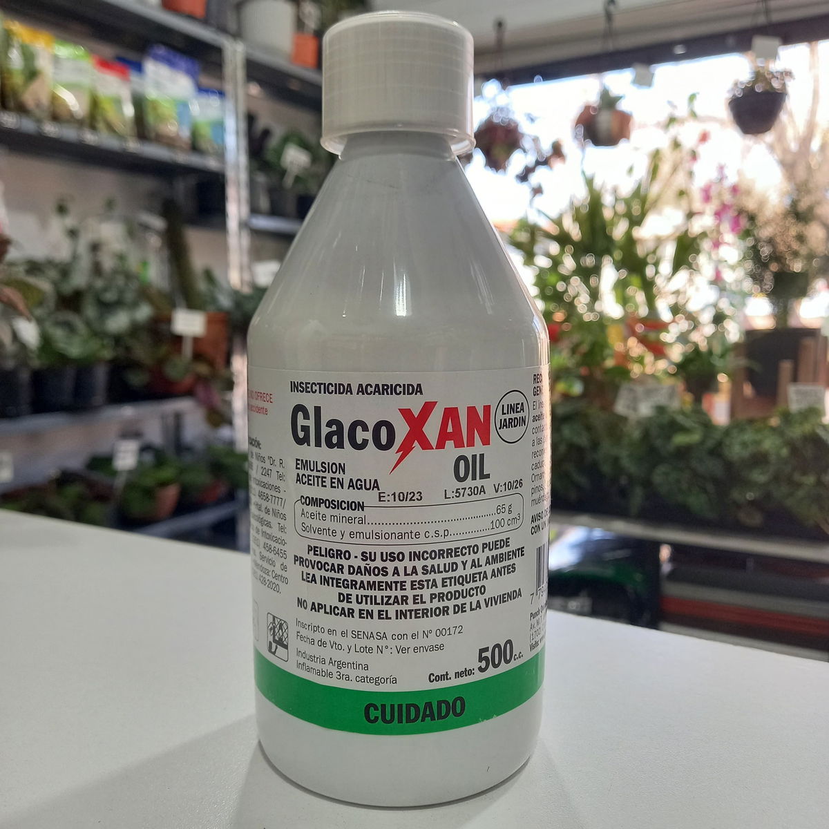 GlacoXAN OIL es un aceite mineral, de color blanco emulsionado. Es un insecticida acaricida que actúa por contacto, extendiéndose por encima del insecto o del ácaro, obturando sus vías respiratorias y causando su muerte por asfixia. A su vez, deja una fina película protectora sobre las plantas tratadas, que le otorga brillo y protección frente a nuevos ataques.