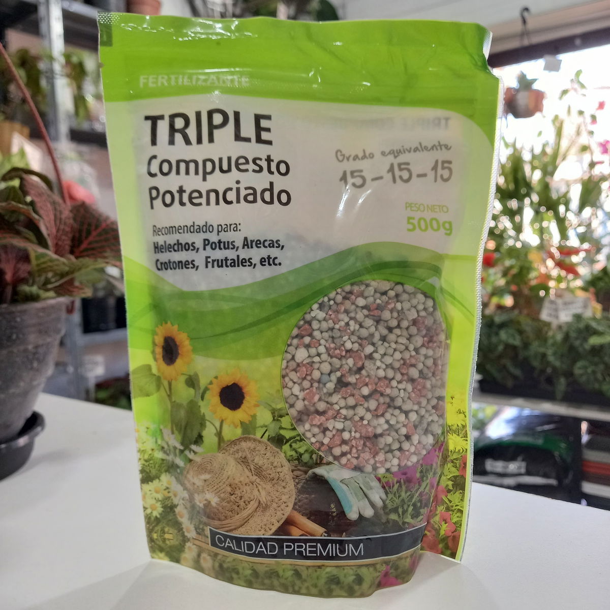 -El abono mineral Triple 15 contiene nitrógeno, fósforo y potasio.