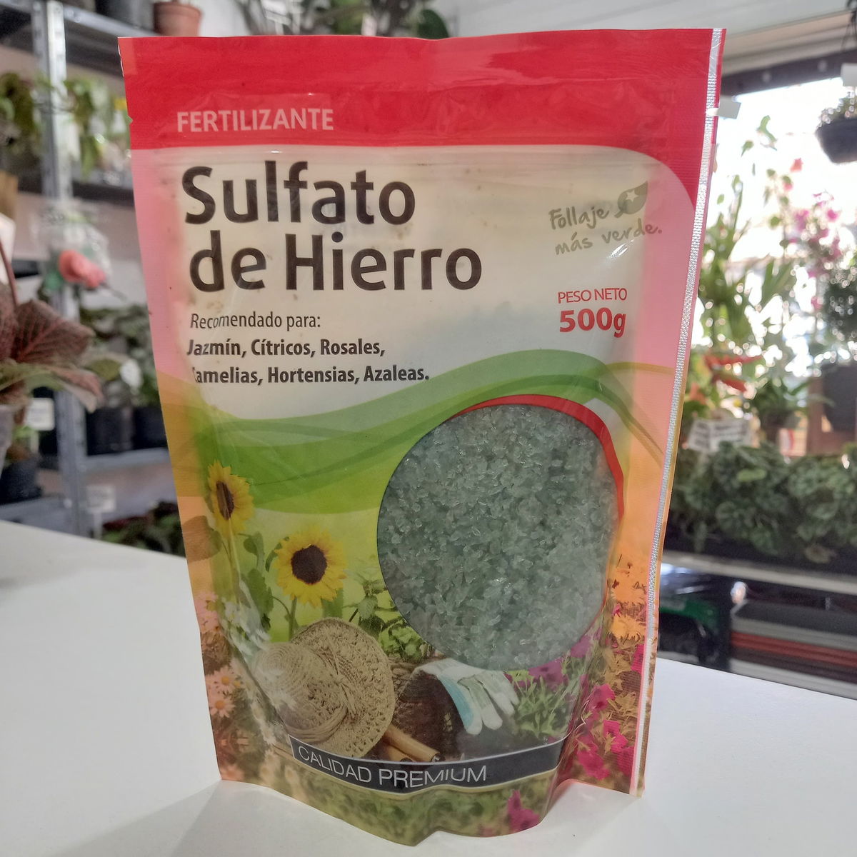 *El fertilizante SULFATO DE HIERRO está compuesto por AZUFRE Y HIERRO. El azufre (como sulfato) interviene en la formación de las proteínas, su ausencia en el suelo produce plantas débiles y de escaso desarrollo.