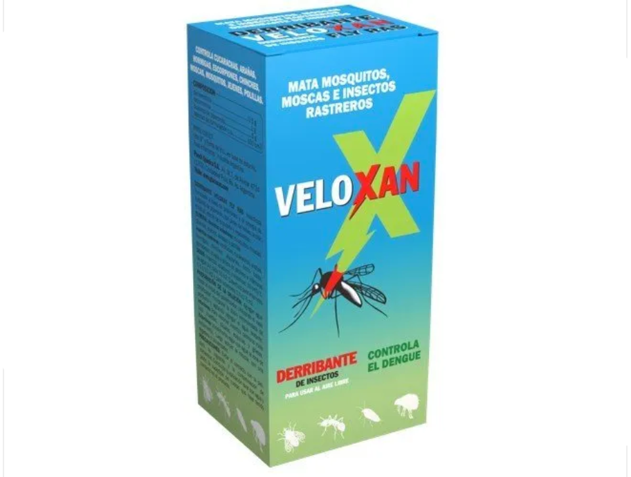 DERRIBANTE VELOXAN FLY RAS es un insecticida a base de piretroides, y la sinergia de butóxido de piperonilo con efecto de expulsión y repelencia. Eficaz herramienta en un plan de control de manejo integrado de plagas. Para el control de mosquitos es necesario complementar con acciones de descacharrado, uso de repelente a base de Citronela (CITROXAN) y aplicación de larvicidas (VELOXAN BTI) en donde haya acumulación de agua de riego o lluvias. Para el control de cucarachas es necesario complementar con acciones de aplicación de cebo en gel CUCAXAN y bloqueo de las vías de accesos a la vivienda.
