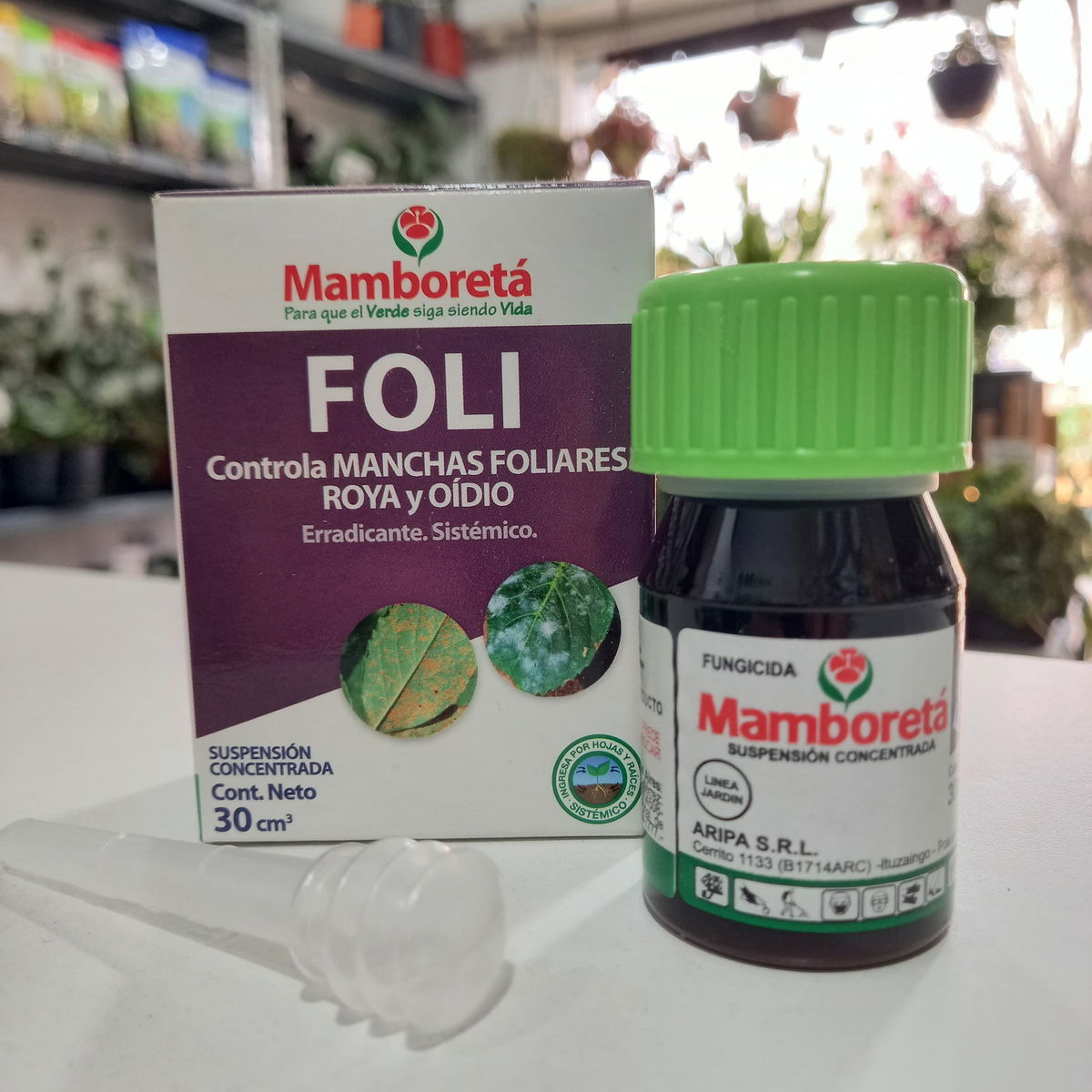 Mamboretá FOLI es un fungicida perteneciente al grupo químico de los triazoles, con acción preventiva, curativa y erradicante. Controla enfermedades tales como roya, pudriciones, manchas foliares, oídio, etc,