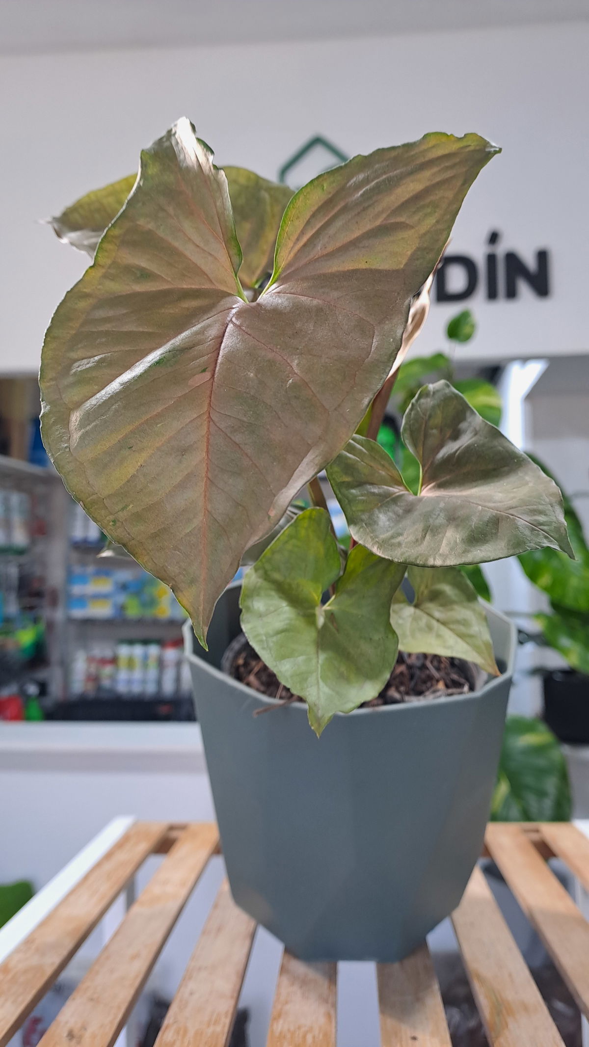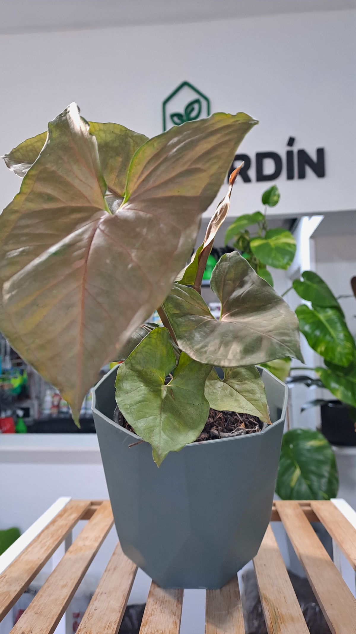 Singonio con tonalidades cobrizas o bronce en las hojas, muy llamativo.