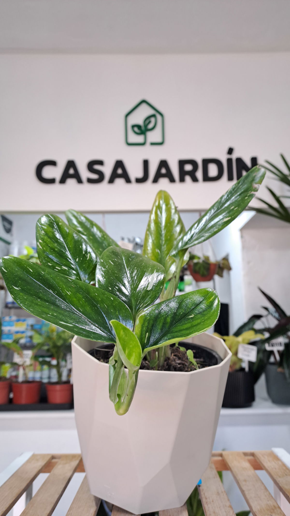 Descripción: Follaje alargado y arqueado con aspecto elegante; puede presentar tonos oscuros o leves variegaciones según ejemplar. Buena planta colgante o trepadora.