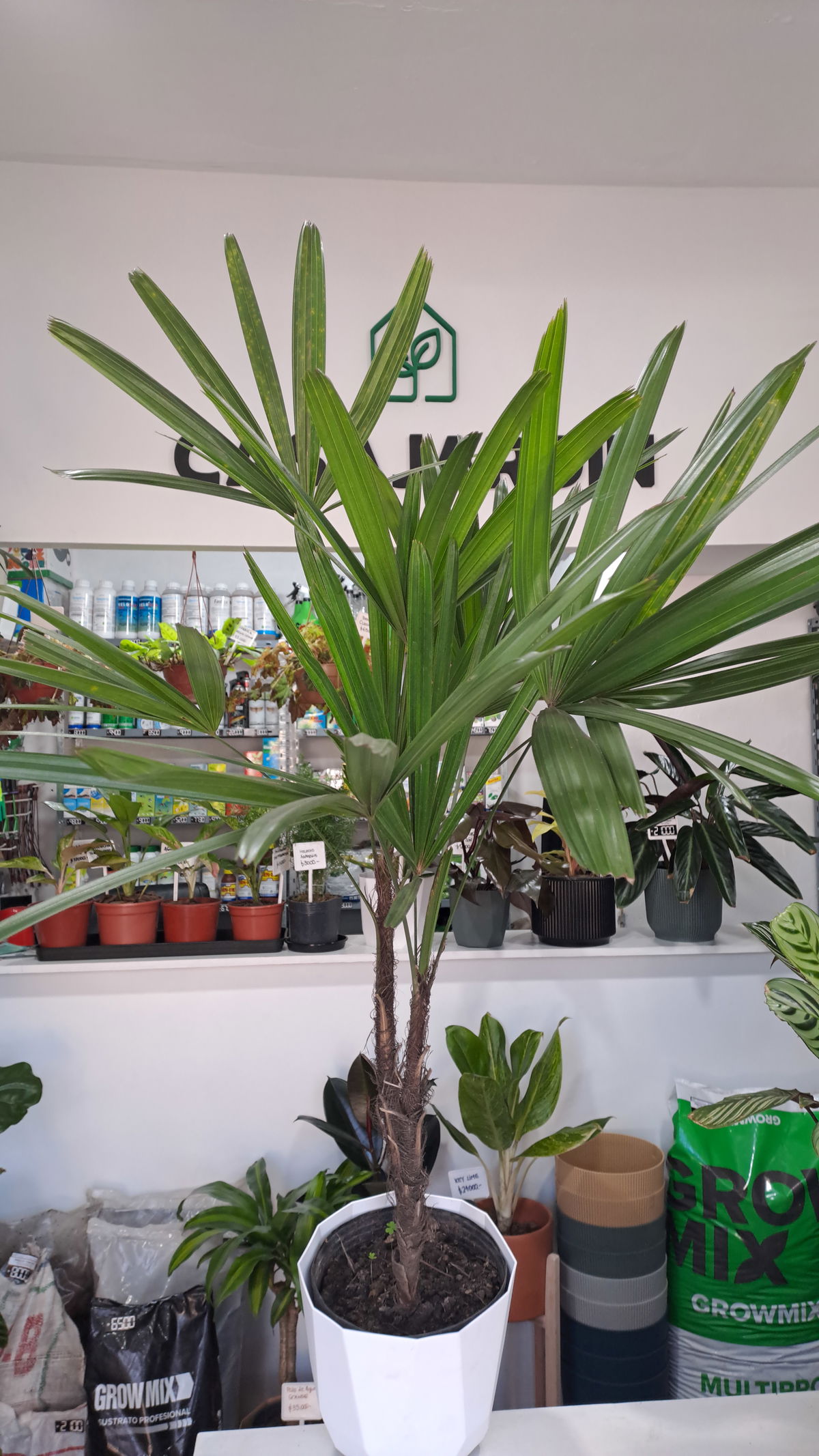 Descripción: Palma elegante de tallos delgados cubiertos por fibras y hojas en abanico, divididas en segmentos anchos. Ideal para interiores luminosos o patios protegidos.