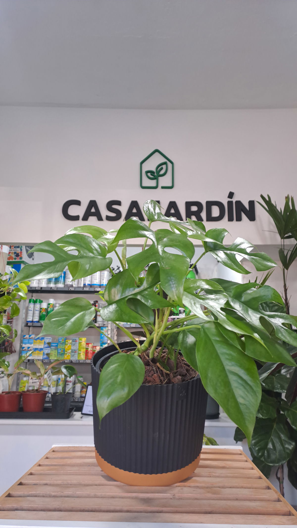 Descripción: Trepadora tropical de hojas verdes brillantes y partidas, parecida a la monstera deliciosa pero de porte más compacto. Ideal para interior moderno.