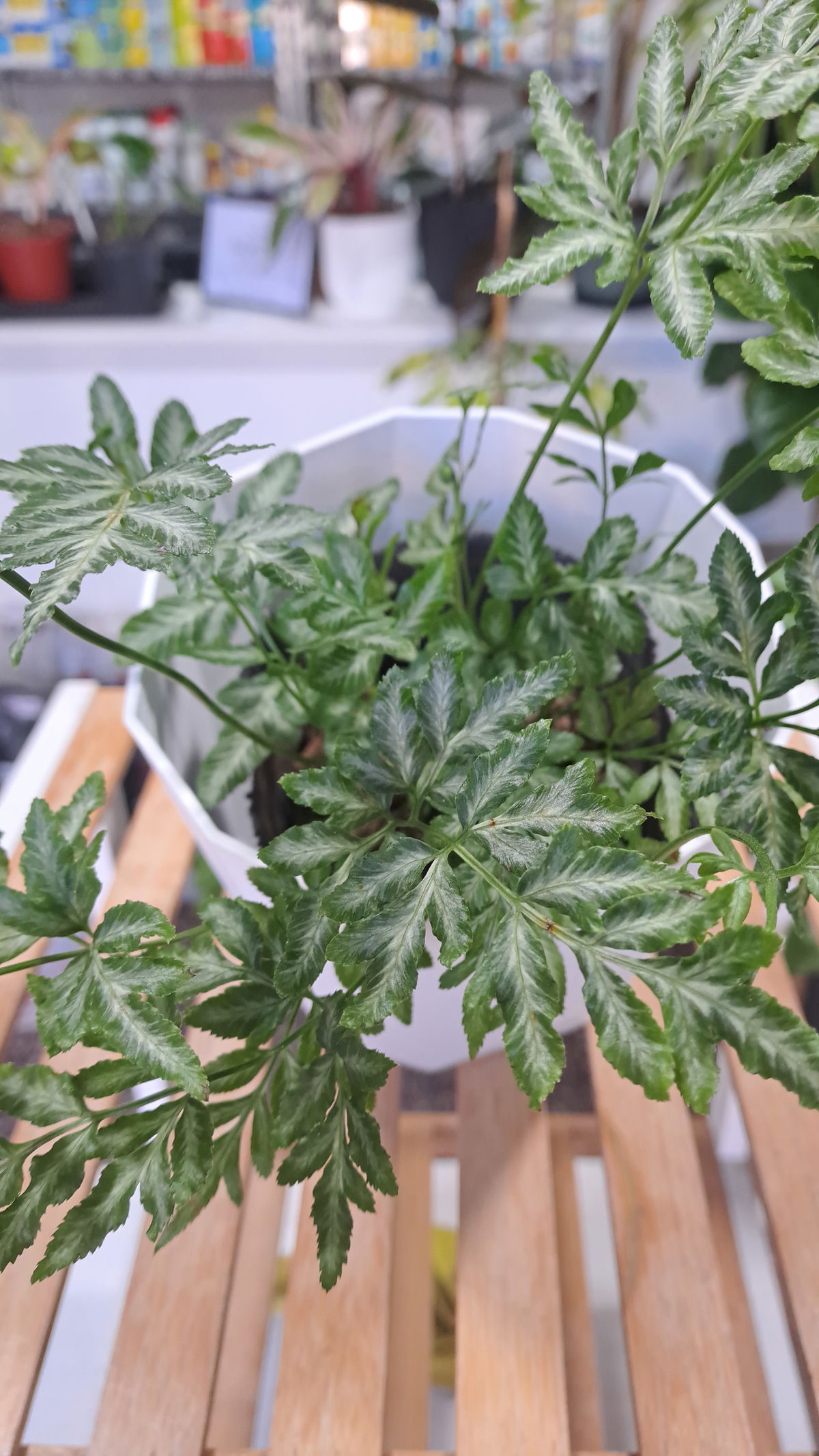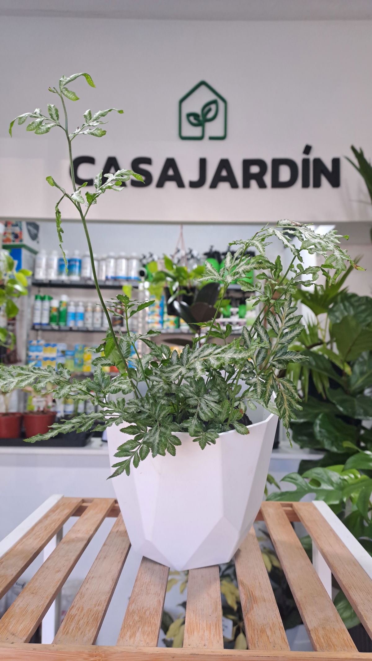 Descripción: Helecho elegante de hojas divididas en lóbulos finos que recuerdan a un aralia. De porte compacto y muy decorativo, ideal para interiores y galerías.