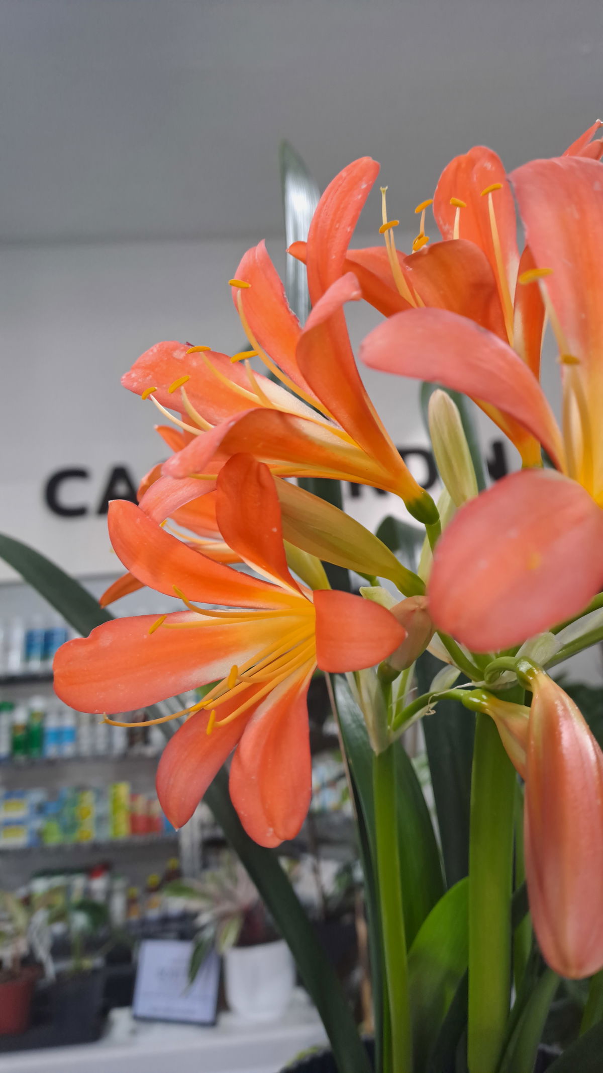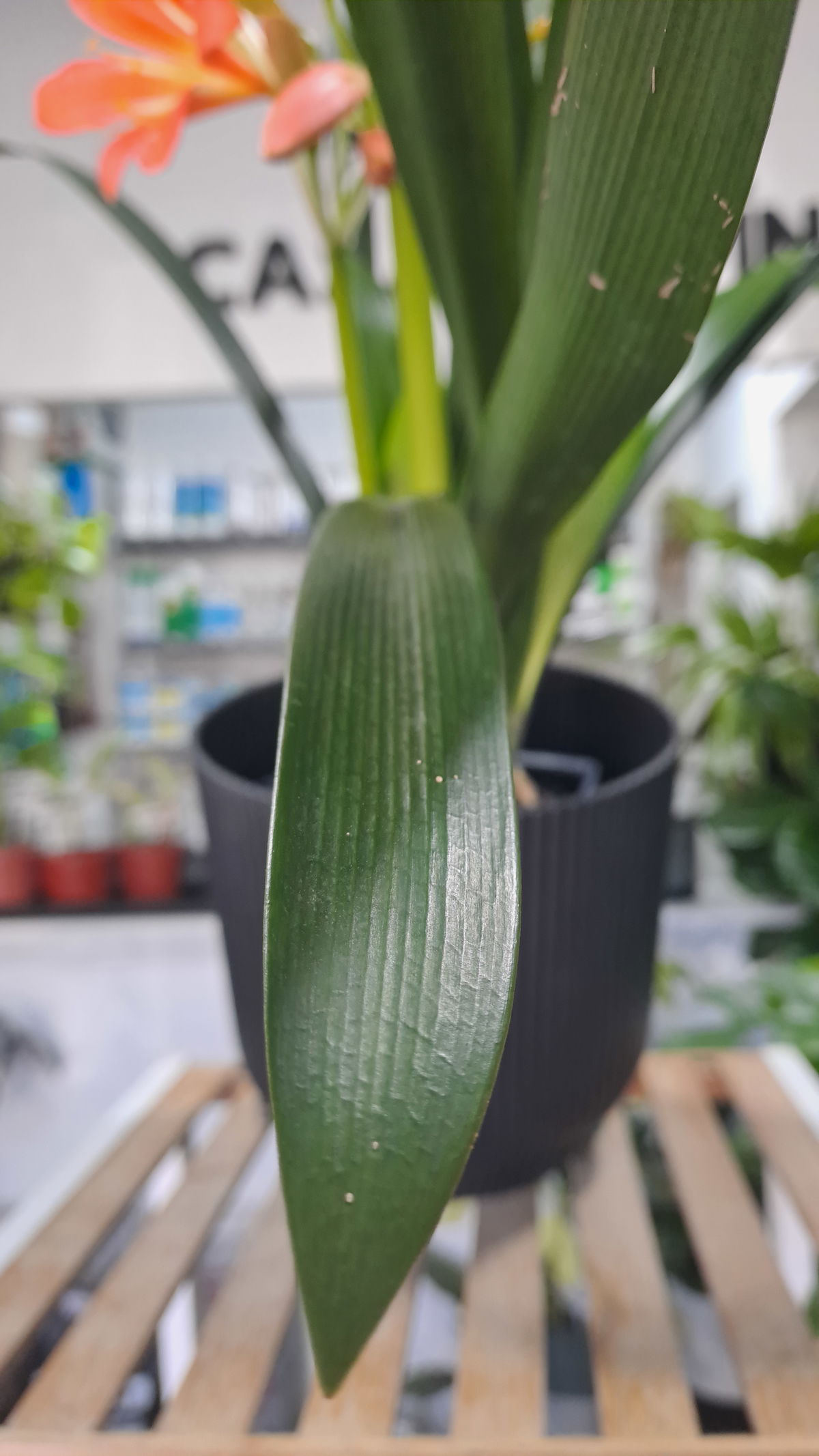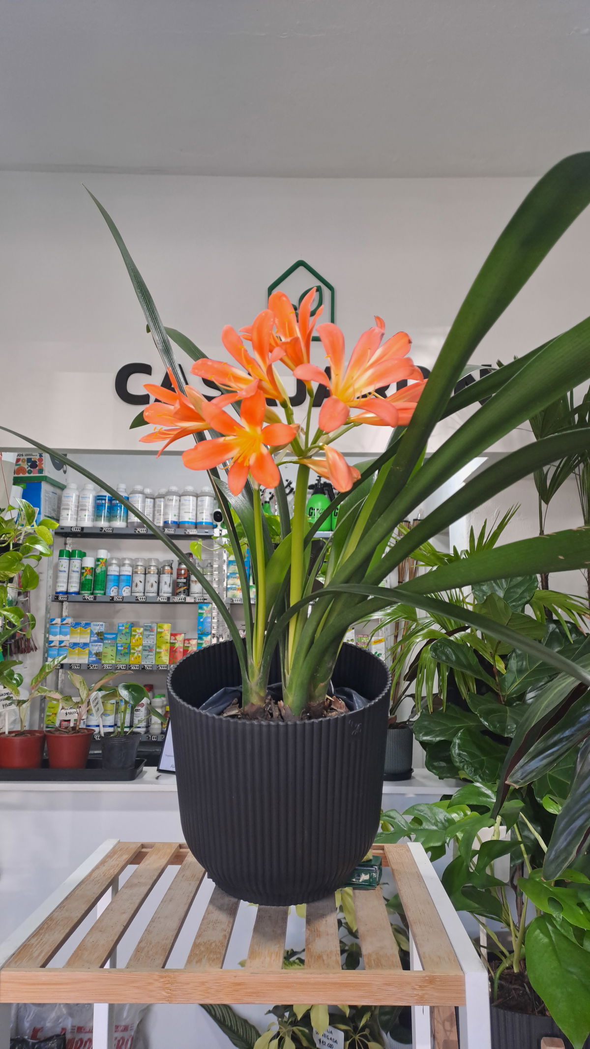 Descripción: Planta de hojas largas en forma de cinta que produce racimos de flores anaranjadas o amarillas muy llamativas.