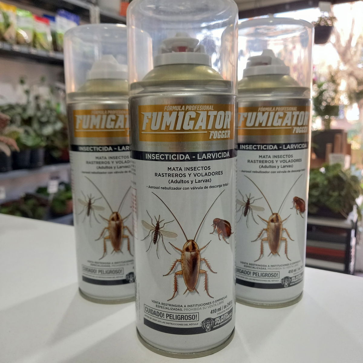 FUMIGATOR® FOGGER es un insecticida larvicida en aerosol con válvula de descarga total para el control de insectos rastreros (cucarachas, hormigas, arañas, insectos de la madera, ácaros, piojos, chinches, pulgas, garrapatas, bicho bolita) y voladores (mosquitos moscas, tábanos, polillas y avispas). También es ideal para el control de escorpiones.